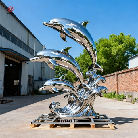 Grande Jardim exterior aço inoxidável Dolphin Fountain Estátua para Pátio Decoração Paisagem