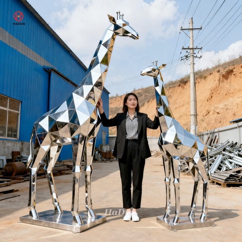 HADUN jardim ao ar livre arte moderna grande escala metal abstrato alongamento aço inoxidável girafa família escultura