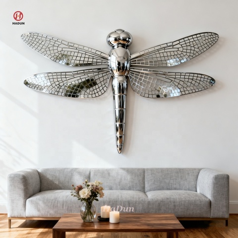 Interior Aço Inoxidável Dragonfly Escultura Metal Estátua Moderna Wall Decor para Sala