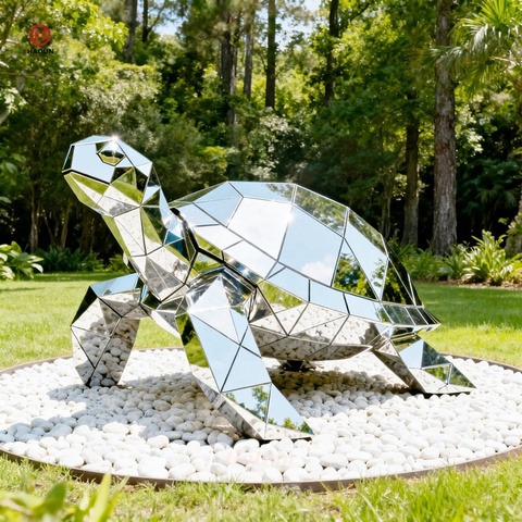 Jardim ao ar livre Stainless Steel Turtle Estátua Weatherproof Metal Decor para Pond Side
